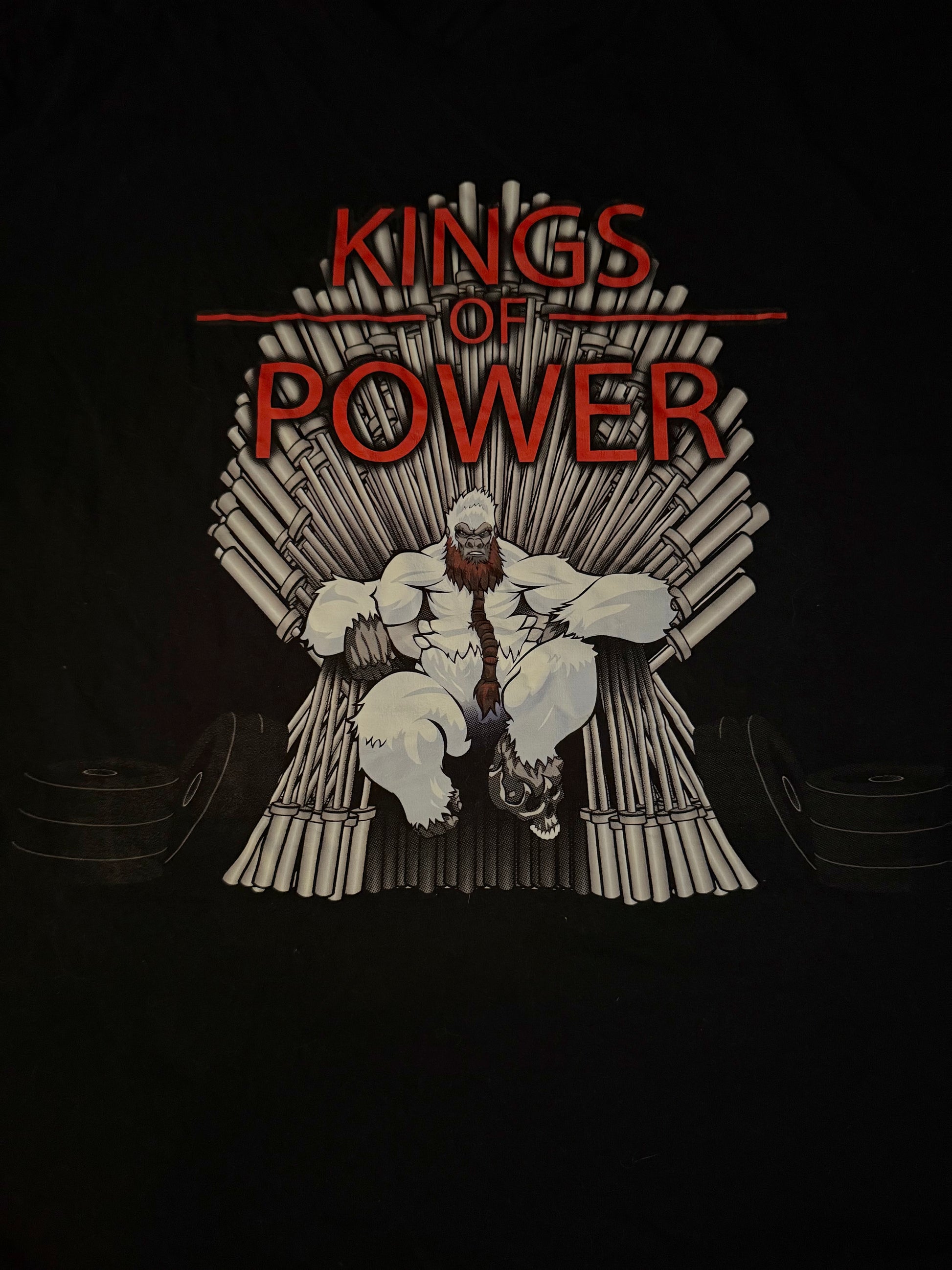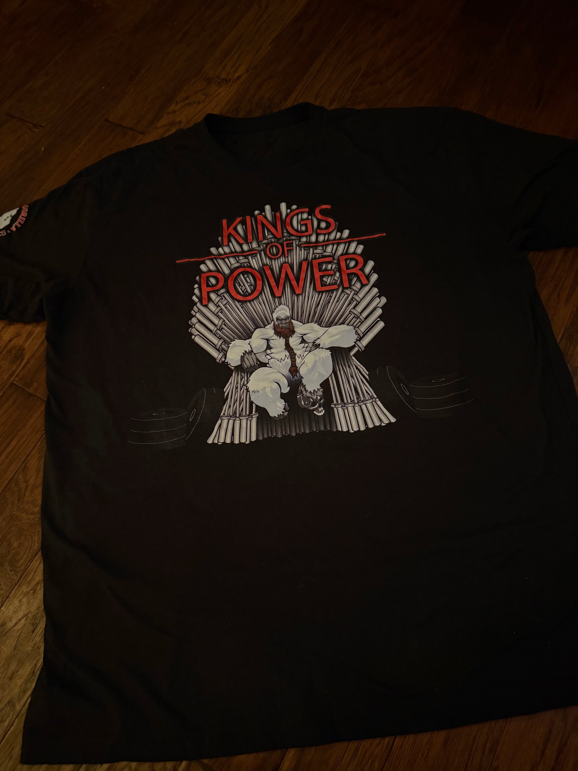 Comfortable, breathable, and soft Black T-shirt with Kings Of Power design on front .